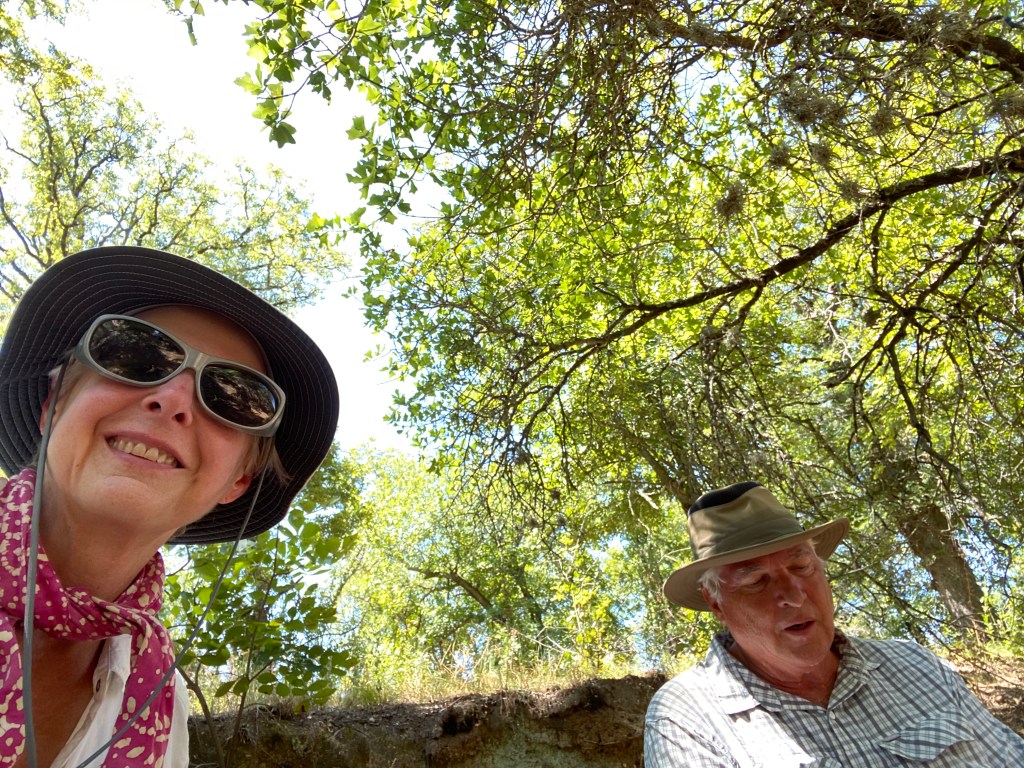 First we hiked to the top of the main dome and then down to ground level to a part of the park that not many people know about. He has hiked the park for 25 years and is the president of the Friends of Enchanted Rock. So going to a little-visited part of the park is normal for him. We were having a great hike, not too strenuous, although it was just as hot as we expected. As we descended a low but steep hill, I stepped into a soft place, twisted my ankle, felt a snapped and fell to the ground. Suddenly our pleasant hike was changed into an emergency. Luckily we were under a stand of trees with shade and a nice breeze. Robert called on all his backpacking experience and applied first aid to my foot. He made contact with the park ranger and got us transported out. He even carried me on his back to meet the four-wheeler. It was quite the adventure. And, yes, my ankle is broken. Not the journey we were expecting.